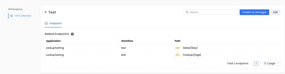 The created collection will appear on the API Collections page. Click on the collection name to navigate to the Publish API Collections section.