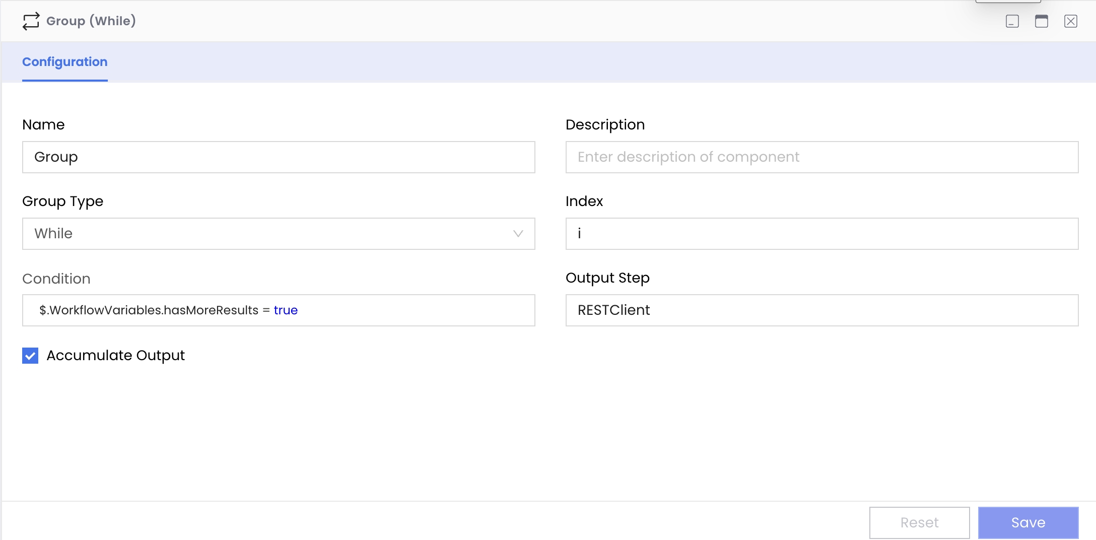 The While loop repeatedly executes a group of activities as long as a specified condition remains false. This condition can be dynamic and utilize the output of activities within the group.