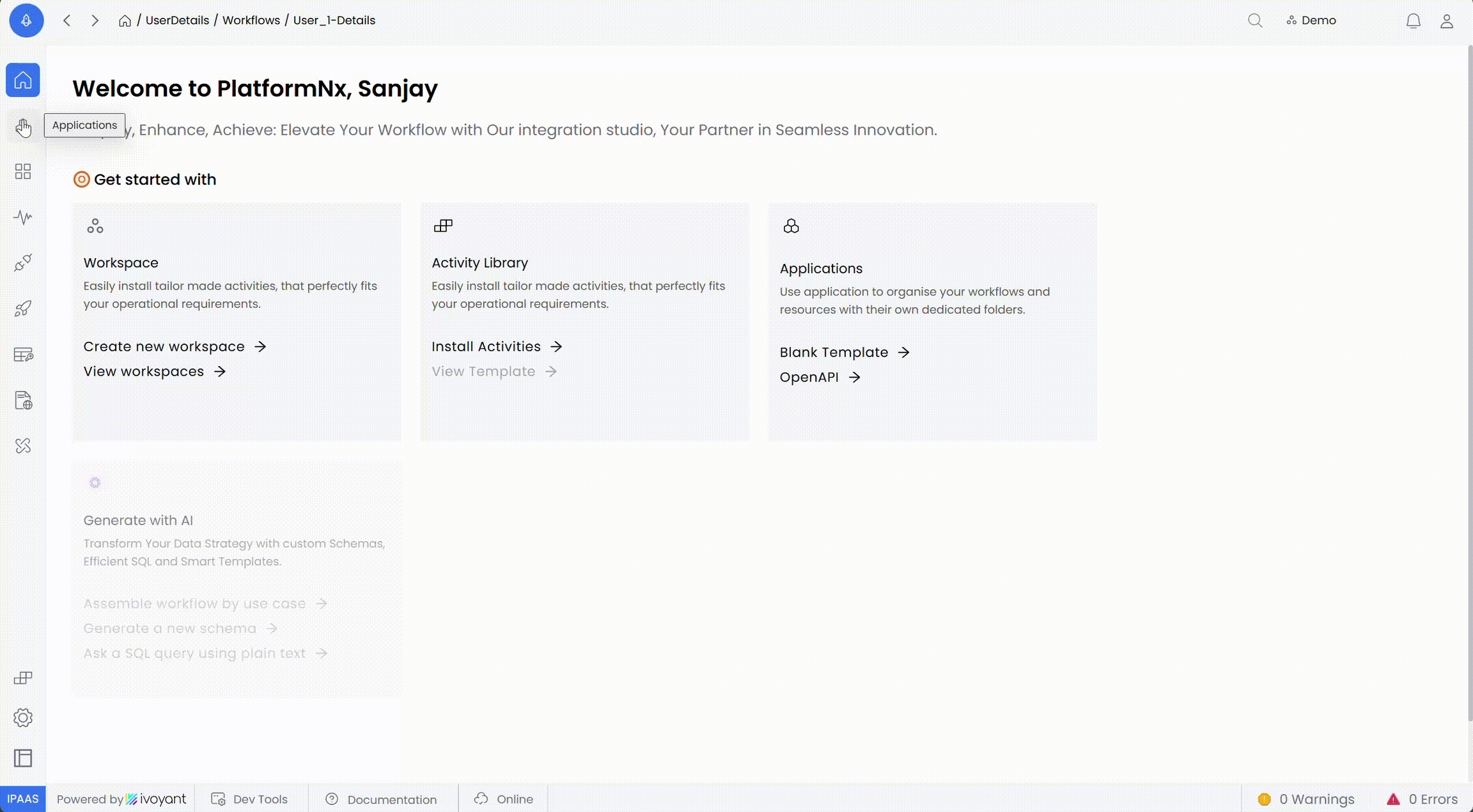 Users can deploy workflows as a Secured API or Public API in the Development environment by default.